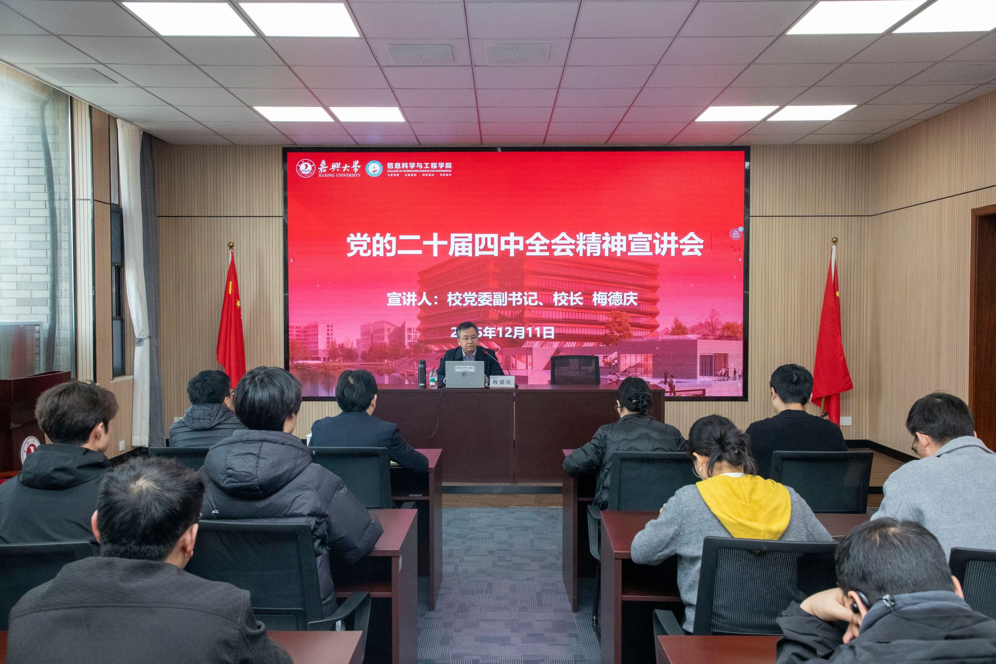 ,就党的二十届四中全会精神和省委十五届八次全会精神作专题宣讲。信息学院全体党员教师和学生代表参加宣讲会。